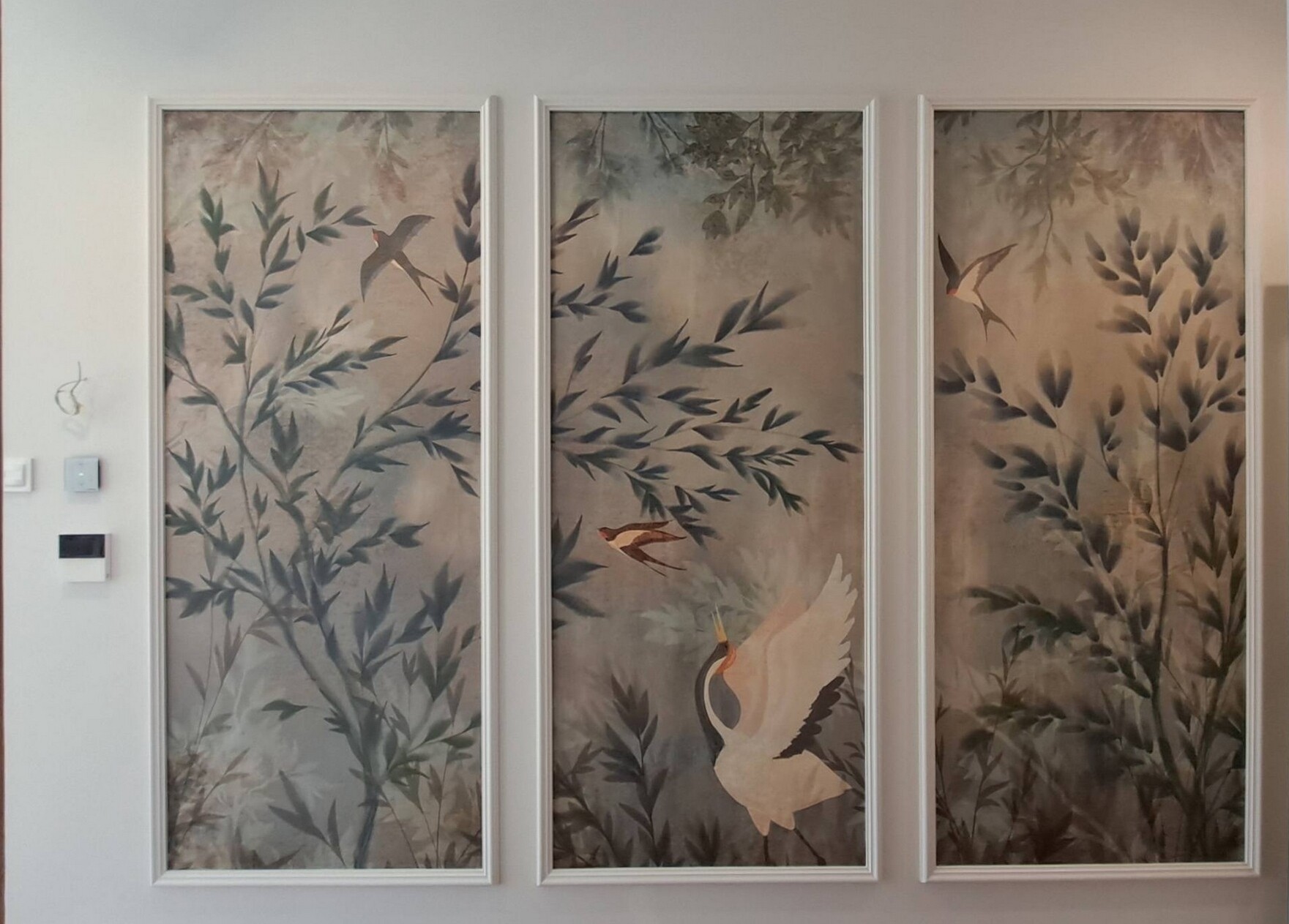 Dwie ramki ścienne i tapeta wewnątrz.