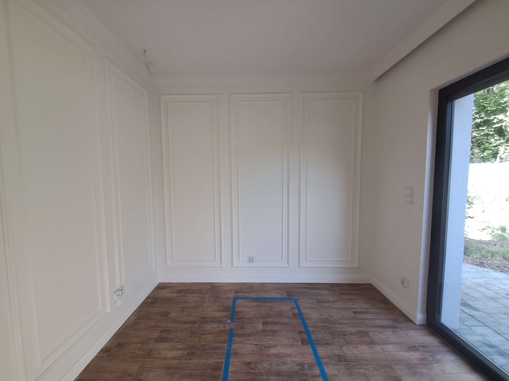 Podwójna ramka ścienna, listwa przysufitowa oraz przypodłogowa.