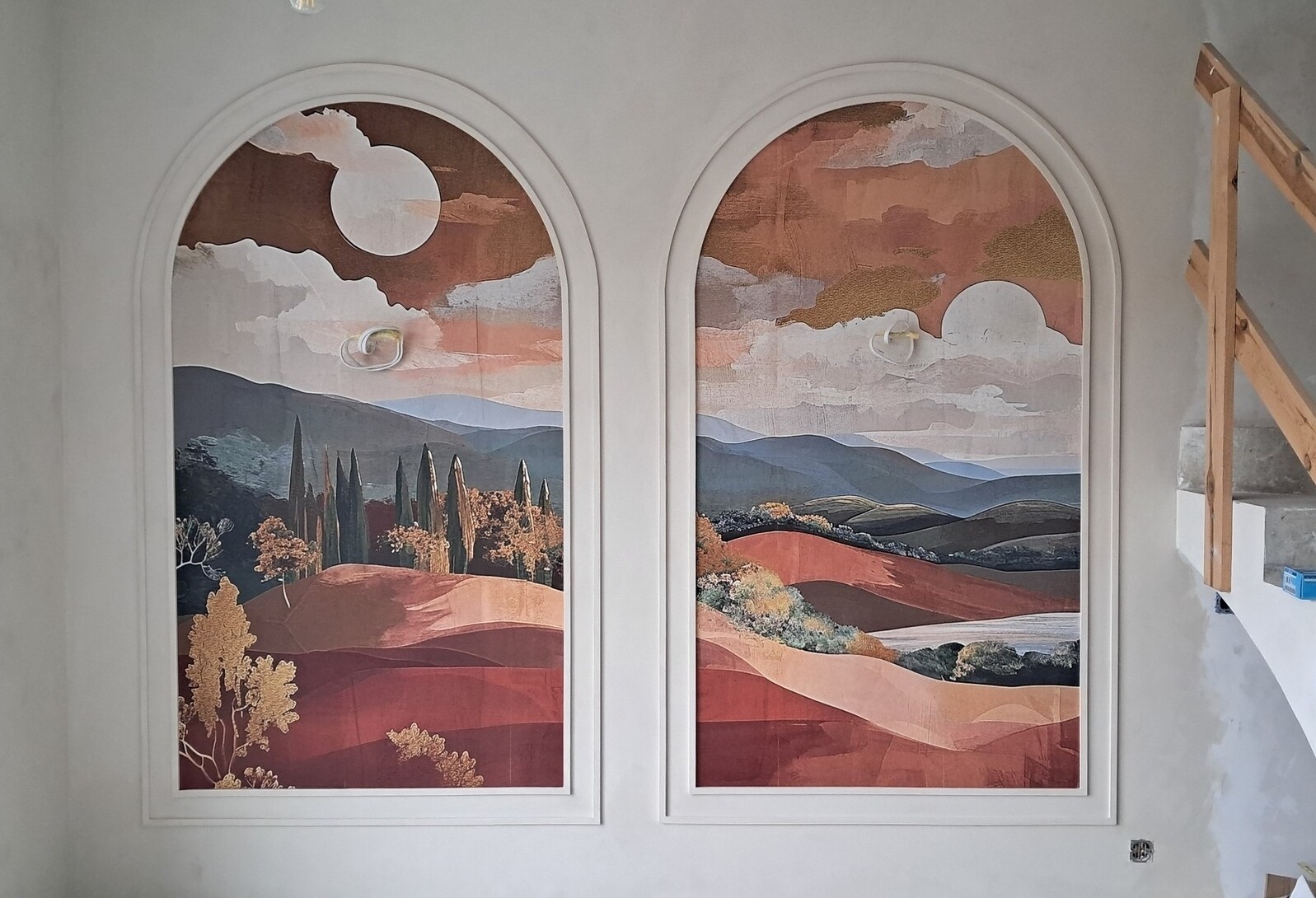 Dwie ramki ścienne i tapeta wewnątrz.